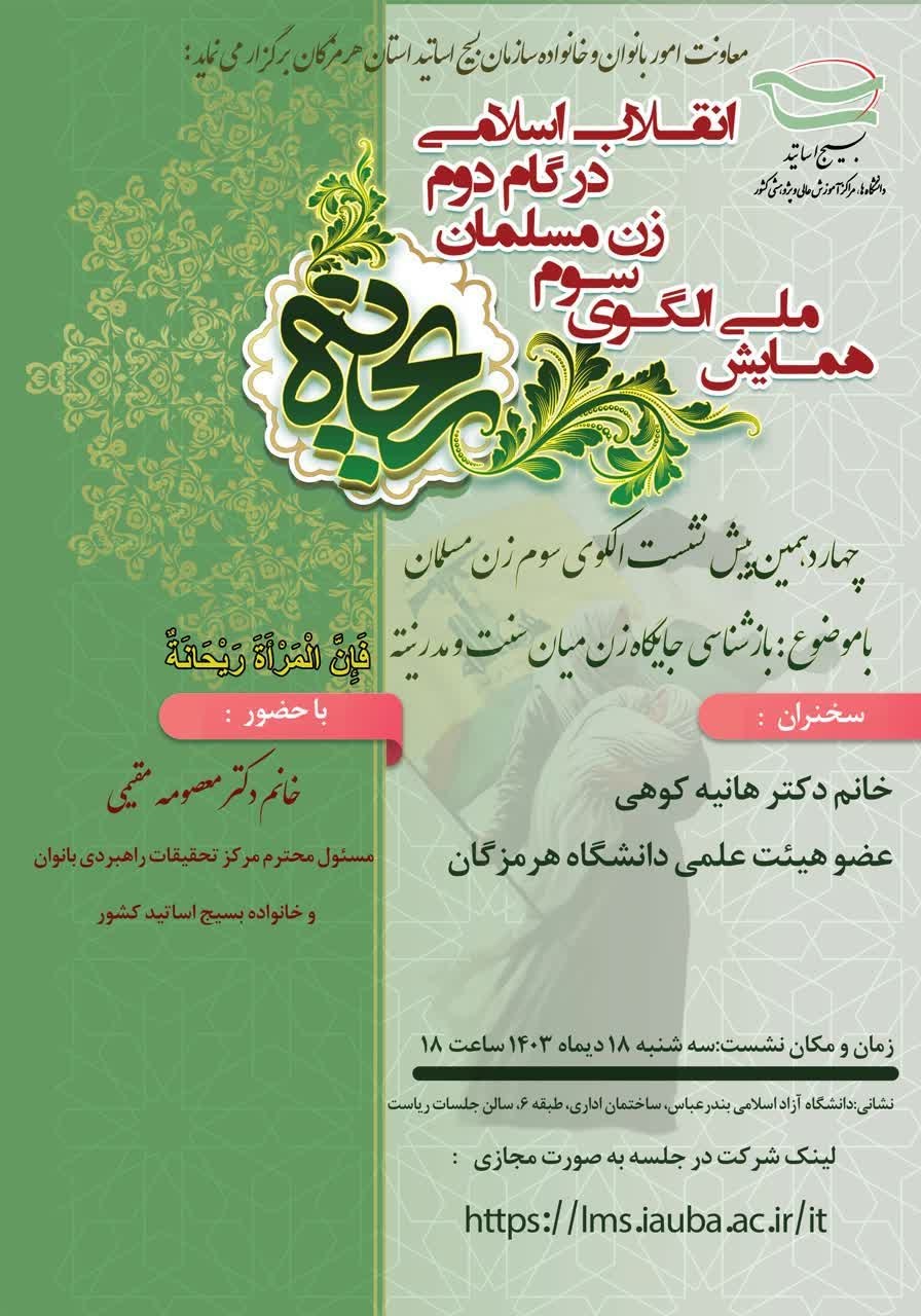 معاونت امور بانوان و خانواده سازمان بسیج اساتید استان هرمزگان برگزار می‌نماید: