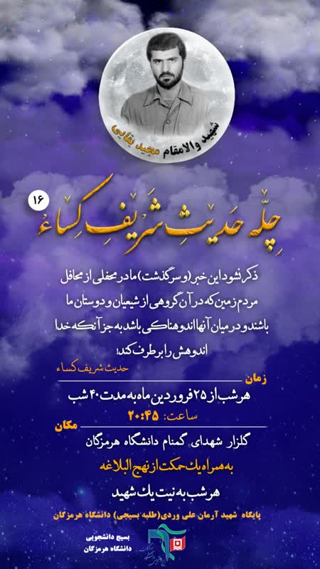 پایگاه شهید آرمان علی وردی (طلبه بسیجی)دانشگاه هرمزگان برگزار می‌کند