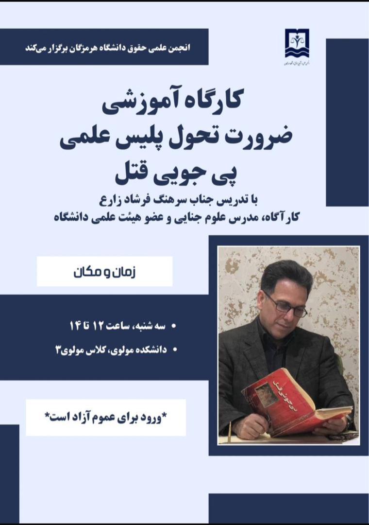 فراخوان شرکت در کارگاه آموزشی «ضرورت تحول پلیس علمی و پی‌جویی قتل» در دانشگاه هرمزگان