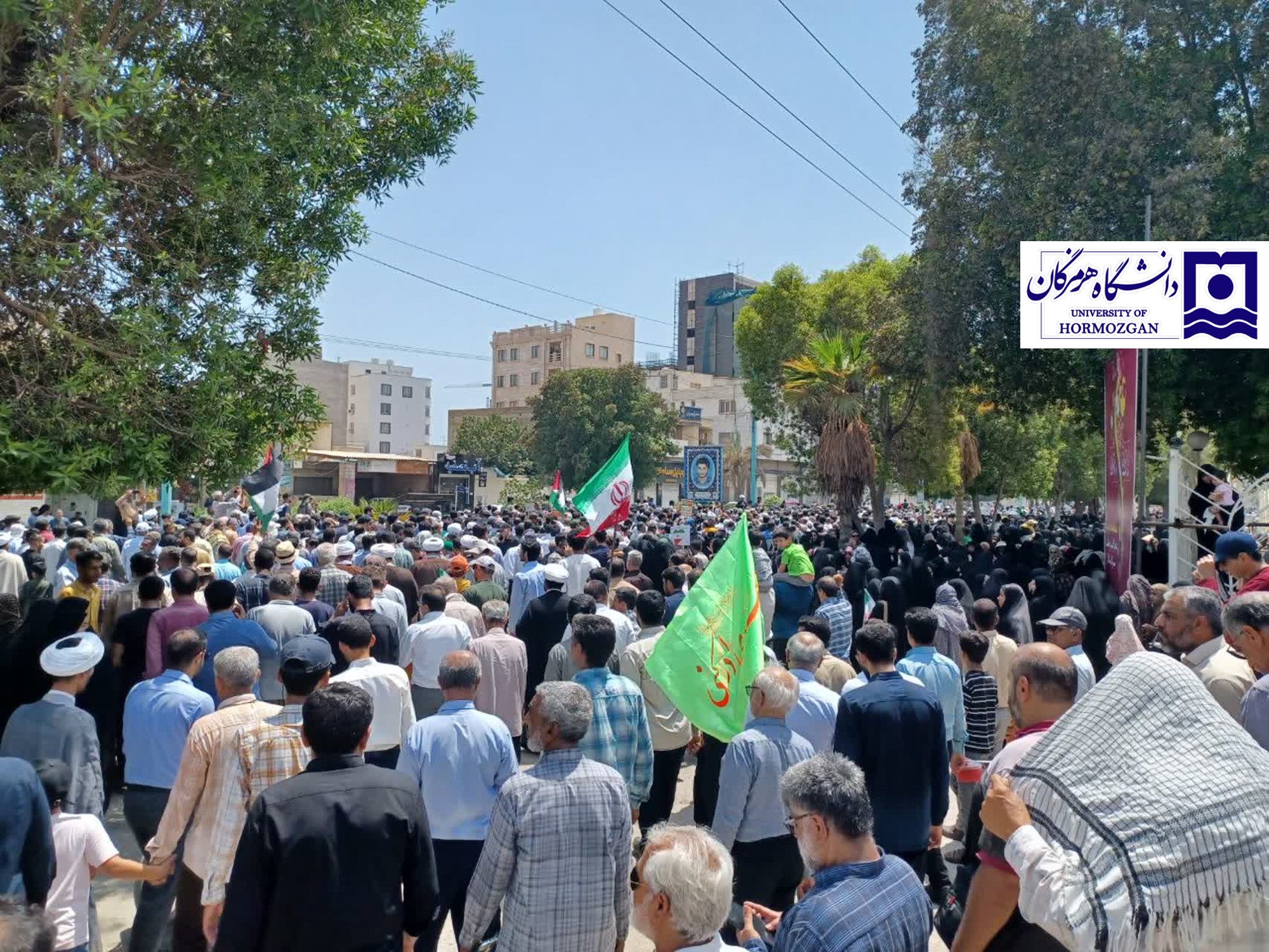 خانواده بزرگ دانشگاه هرمزگان با این حضور شکوهمند نشان دادند که دانشگاه نهتنها پایگاه علم و اندیشه، بلکه سنگر دفاع از ارزشها، عزت ملی و حقیقت است.