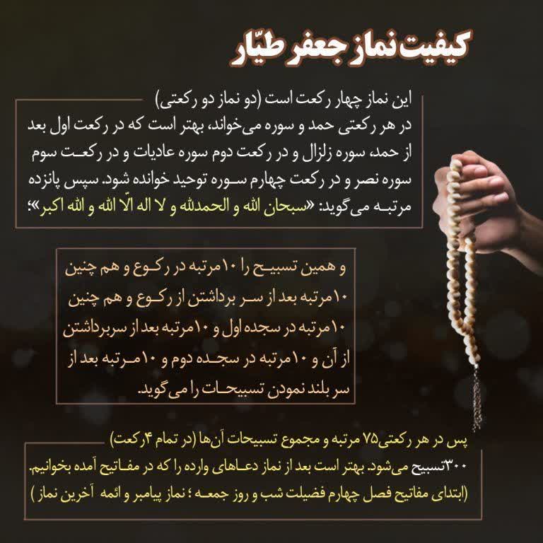 بسم الله الرّحمن الرّحیم در ایام اعتکاف اقلّاً یک بار نماز حضرت جعفر را بخوانند اما اگر در هر سه روز اعتکاف این عمل را انجام دهند بهتر است. سیّدعلی خامنه‌ای