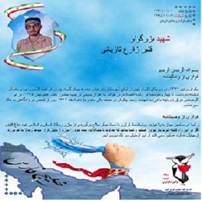 فرازی از زندگینامه و وصیتنامه شهید بزرگوار قنبر زارع تازیانی
