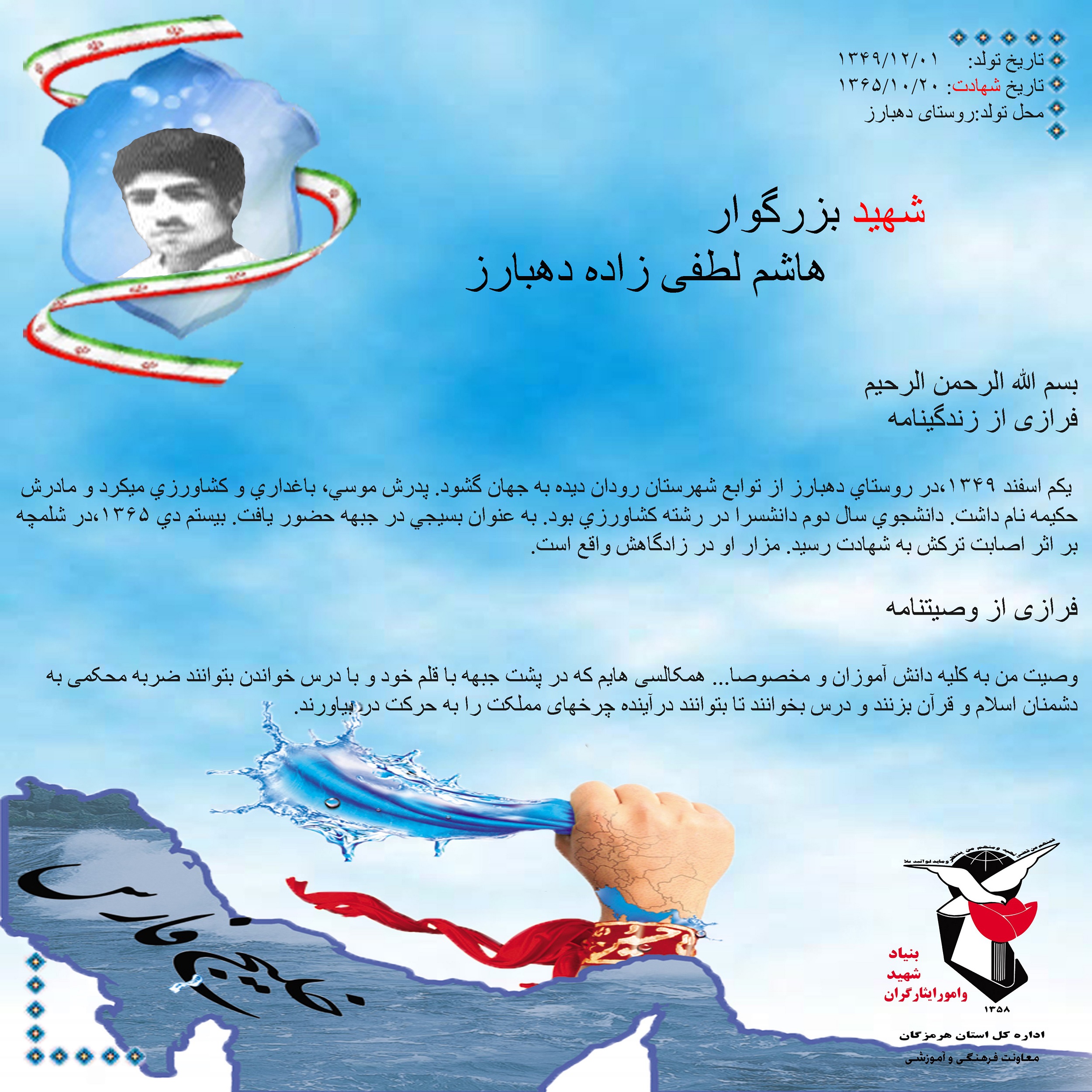 فرازی از زندگینامه و وصیتنامه شهید بزرگوار هاشم لطفی زاده دهبارز