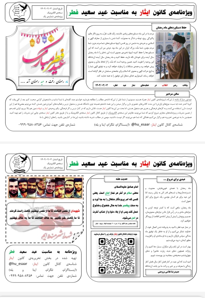 ویژه نامه ی کانون ایثار به مناسبت عید سعید فطر