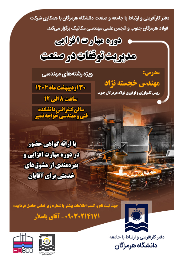 برگزاری کارگاه مهارت افزائی با عنوان :مدیریت توقفات در صنعت