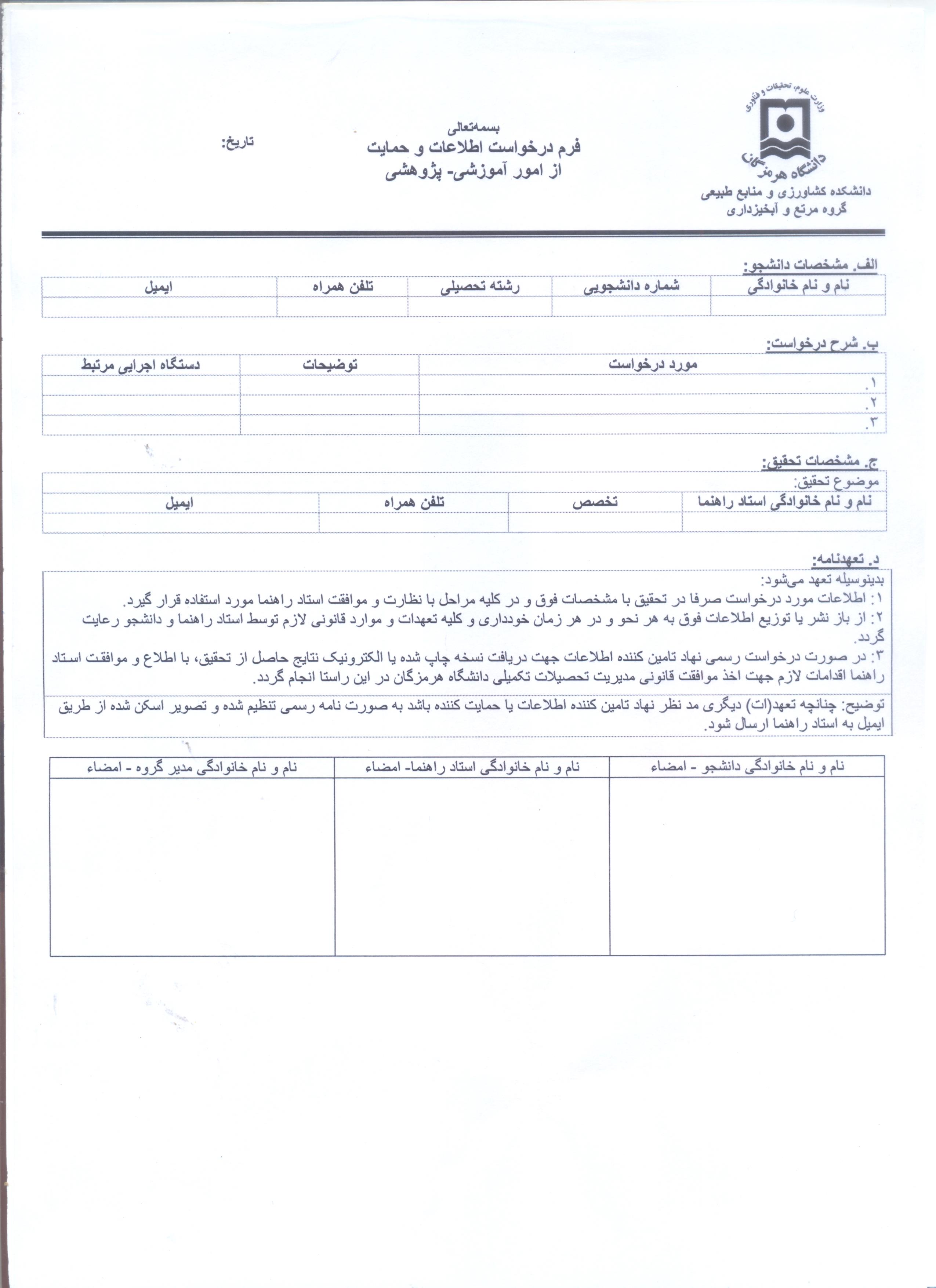 فرم درخواست داده از ادارات خارج ازدانشگاه(1935)